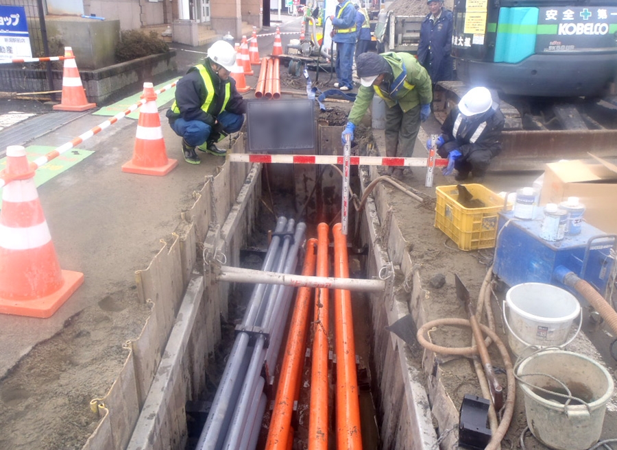 防災と景観の改善や路上スペースの確保を目的とした電線類地中化の方法の1つで、電力線・電話線やその他の通信ケーブルなどをまとめて地中に埋設する工事です。
