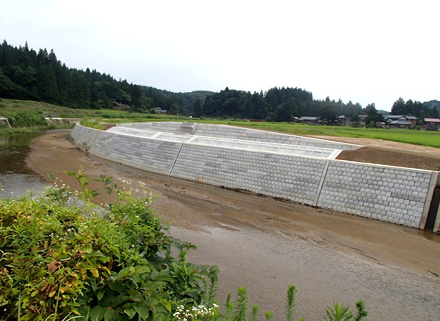 平成23年7月、新潟・福島豪雨で甚大な被害を被った鹿熊川の改良復旧工事。