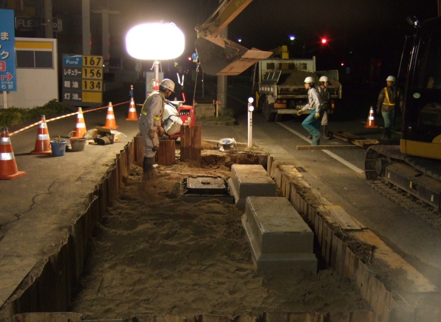防災と景観の改善や路上スペースの確保を目的とした電線類地中化の方法の1つで、電力線・電話線やその他の通信ケーブルなどをまとめて地中に埋設する工事です。 またこれによって電柱が不要となり、道路・歩道を有効に使えるようになる為、歩行者などのバリアフリーという面でも有効なものとなります。 [元請]発注者:新潟市