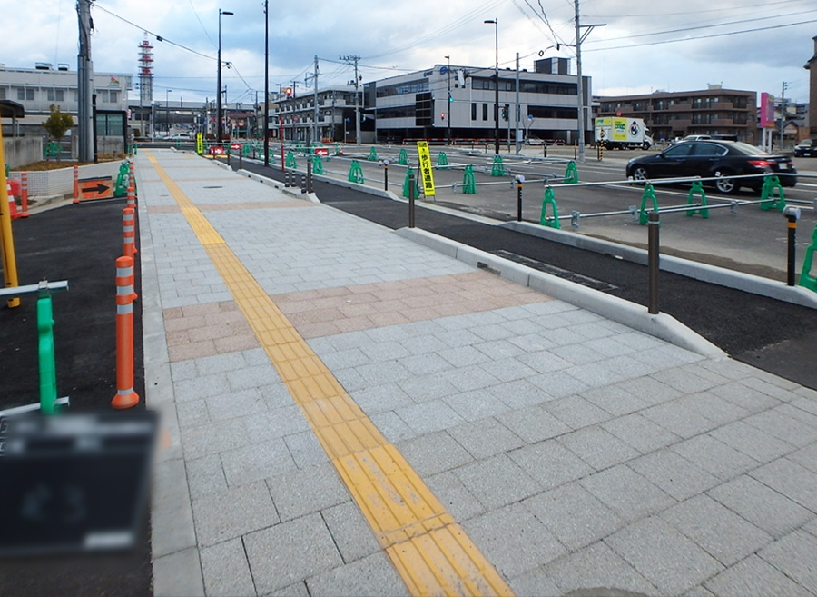 新潟駅の高架化に伴う道路改良工事。その道路の電線を地中化する為の、CCBOX据付と管路の布設、歩車道を整備する工事です。 (道路排水にVS側溝を布設し、歩道の舗装は透水性舗装で雨水を地中に浸透させる) 全線開通後は、八千代橋から北越高校まで直通する予定です。