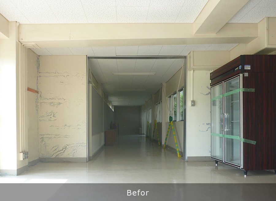 既存体育館を一般開放する為、防火区画用火報連動、電動の防火シャッターを設置しました。 一般者用にトイレに転倒防止の為、手すり及びスロープを設置しました。 設備配管等が防火シャッターと干渉し、設置位置に苦慮しまったが有効開口を確保した、施工が出来ました。