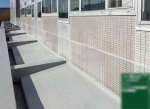 既存のシーリングを撤去し、新たに2成分形変成シリコン系シーリング材の充填を行うことにより、建物内部の雨漏りを改善する防水改修工事。また、外壁タイルの貼付状況も確認し剥落の恐れがある箇所はタイル貼替を行い公衆災害を軽減することができる。 防水工:71㎡ 仮設工:1式 外壁タイル補修:1式